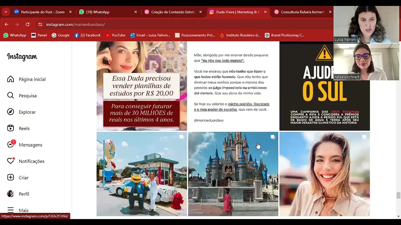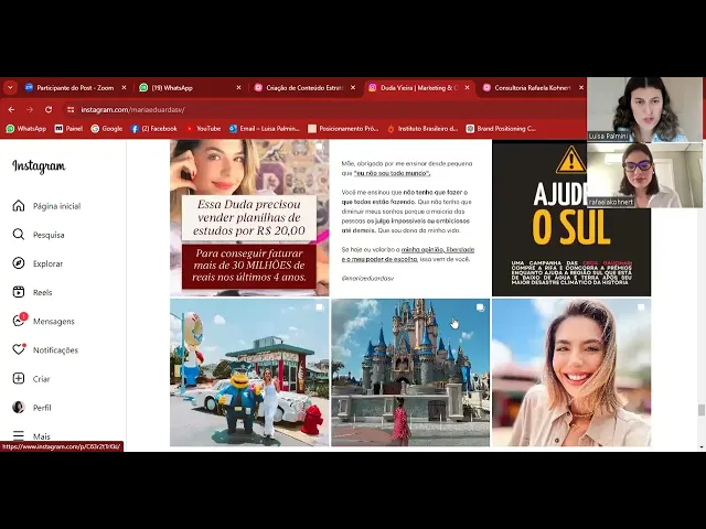 social aham tá vendo Então tem ó posicionamento é o que te leva pro próximo nível E aí era uma uma uma aluna Nossa que comprou consultoria e a gente tava mostrando algumas depoimentos das meninas ó prova social tá que aí é um pouco ois voltar é o que mais os posts de venda Que mais dão resultado geralmente em conteúdo pode ser o que nem dá muito engajamento mas é o post que faz a pessoa querer comprar é isso aqui Uhum é a pessoa ver o resultado tá E também temos paa quente meme dancinha porque aquele