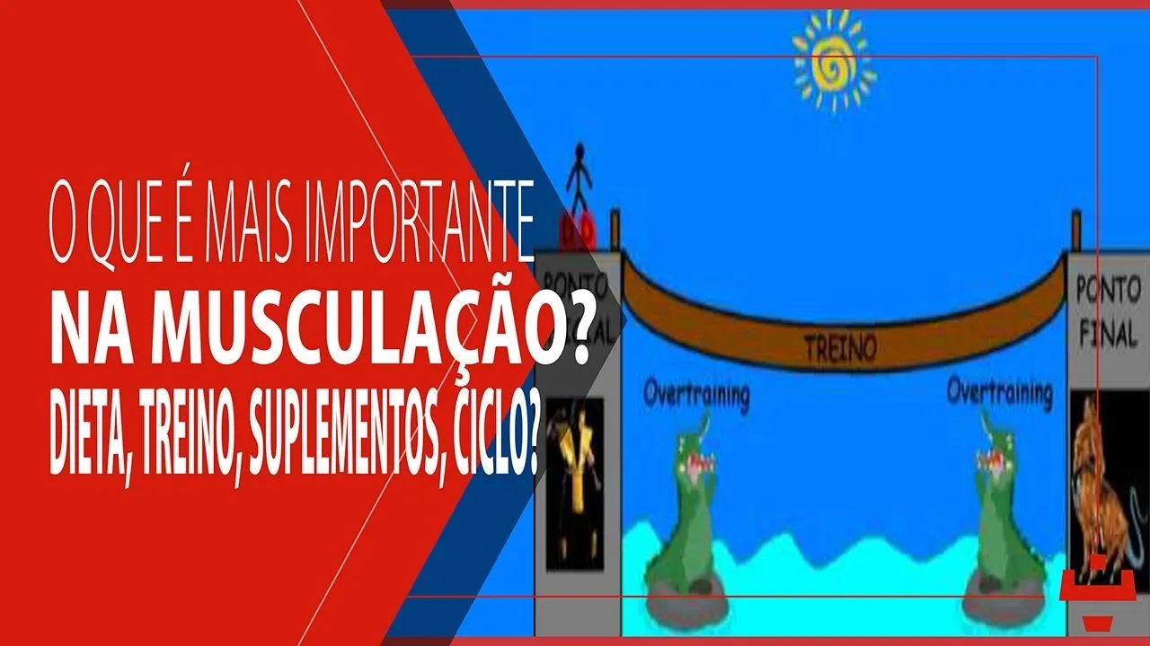 mas percebam que essa ponte não tem nenhuma proteção por tanto Se tentarmos correr vamos cair diretamente no Rio e o overtraining vai devorar a gente então Qual é o segredo o segredo é caminhar lentamente dar um passo de cada vez Esse é o descanso entende a analogia sem treino não tem como chegar na hipertrofia portanto você deve treinar ele tem que existir o treino é o estímulo pro seu corpo crescer Porém nada adianta você ter um treino se não tem a dieta sem a dieta o estímulo fica inútil Nossa ponto de nada serve porque a