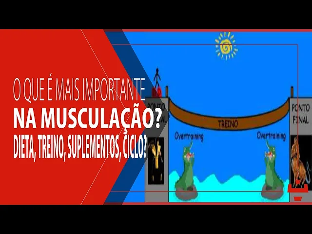 [Música] E aí galera qual será que é o mais importante a nutrição o treinamento o descanso talvez a genética os suplementos ou os anabolizantes tem gente que diz que o treino é tantos por Cent a dieta é tanto eu não vejo dessa forma vejo um pouco diferente tá para vocês entenderem o meu modo de ver o que não quer dizer nada do que é certo ou errado eu fiz um videozinho uma animaçãozinha não tinha nem ser uma animação uma sequência de imagens É apenas para ilustrar para ficar mais fácil tá então confiram aí e me