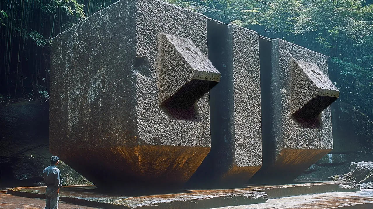 Place its construction in the prehistoric jom period which dates back to around 14,000 to 300 BCE a Shinto Shrine was later constructed around the stone by the Japanese and the megalith became traditionally known as the floating Stone due to its unique placement the design of this stone is highly unusual it resembles a component of a vast machine almost like a cube with a tapered end on one side the stone is precisely cut with sharp clean angles and smooth surfaces that testify to the advanced Stone working techniques of its Builders it is formed into two vertically