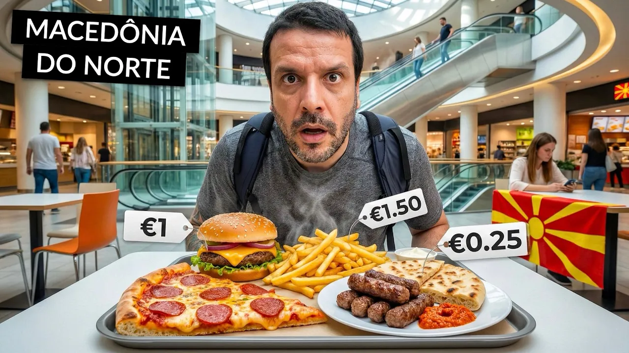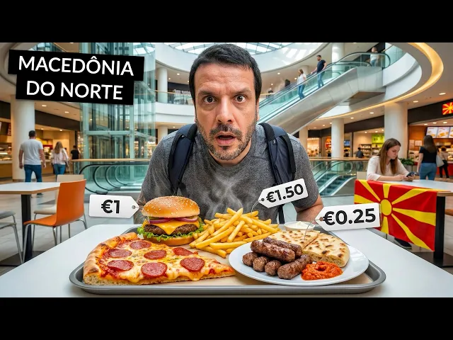[Música] estou em scopia a maior cidade e a capital da Macedônia do Norte porém Chegamos aqui no meio de um feriado nacional e todos os restaurantes do centro estão fechados a cidade está completamente vazia A única coisa aberta que encontramos é esse shopping center que é o maior do país que chama East Gate Mall eu quero ir lá provar alguns sabores encontrados nesse lugar comidas de shopping e consequentemente saber se é verdade o que dizem que aqui é a cidade mais barata da Europa será vamos descobrir Então hoje será um dia repleto de sabores de