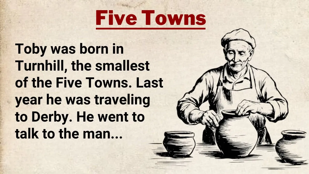 five towns for a quick quick drink the station was busy and he had to wait for his drink when he returned to the train it was already moving Toby was not a young man he couldn't jump on the train so he missed it he went to speak to the man in the station office young man he asked when's the next train to Derby there isn't one before tomorrow Toby went and had another drink I'll go to turn Hill he said to himself slowly and he paid for his drink this was his first visit to the