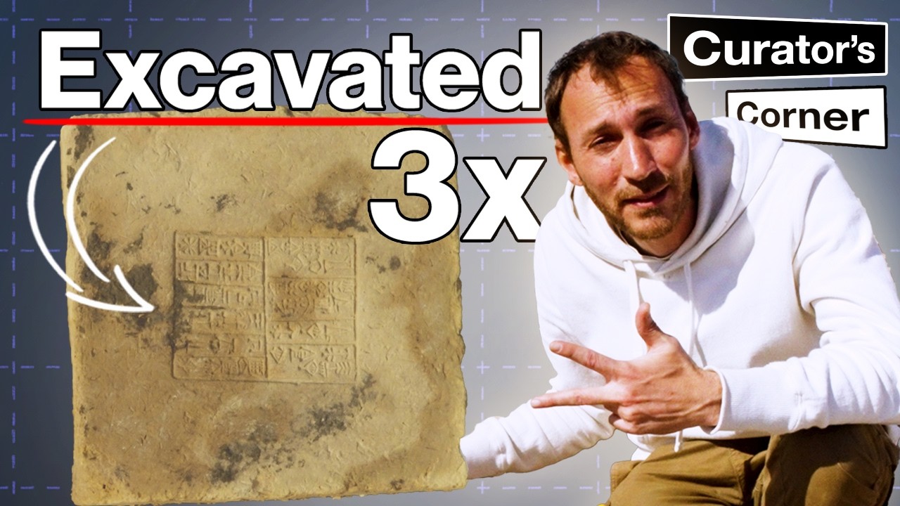 Below is a playlist full of all the videos we’ve ever made concerning cuneiform, and you can see in the top left corner right now a preview of the next episode of Curator’s Corner, which also covers cuneiform. We are going to the ancient Sumerian city of Girsu in southern Iraq, where Sebastien Rey will talk you through two bricks that were found in the same building. That’s pretty normal, buildings are made of bricks.