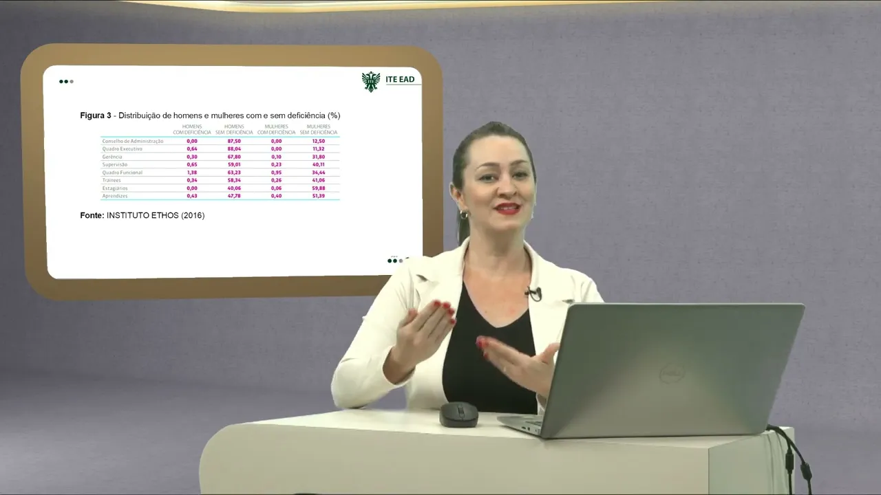 deles é pode estar também é reverberando na tomada de decisão dessas empresas E sem contar né Toda uma questão social e histórica que nós já estamos discutindo desde a nossa primeira aula então o objetivo da nossa aula hoje é justamente entendermos isso que são situações são números que podem representar uma sociedade que de alguma forma teve uma cultura bastante patriarcal bastante machista Talvez né de alguma maneira racista enfim e que olha de repente as pessoas com deficiência também sem praticar algum tipo de inclusão então o que que eu tô querendo dizer com esses números com