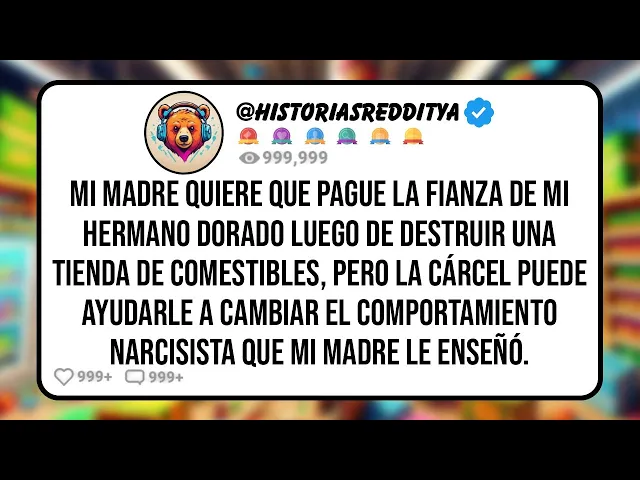 mi madre quiere que pague la fianza de mi hermano dorado luego de destruir una tienda de comestibles pero la cárcel puede ayudarle a cambiar el comportamiento narcisista que mi madre le enseñó no soy mucho de escribir ni siquiera fuera de reddit pero esta historia merece ser compartida según una amiga que me recomendó este lugar Si valió la pena o no ustedes podrán decirme tal vez a alguien más le sirva de advertencia para huir de las dinámicas familiares tóxicas antes de que sea demasiado tarde voy a empezar dándoles un poco de contexto sobre mi infancia no