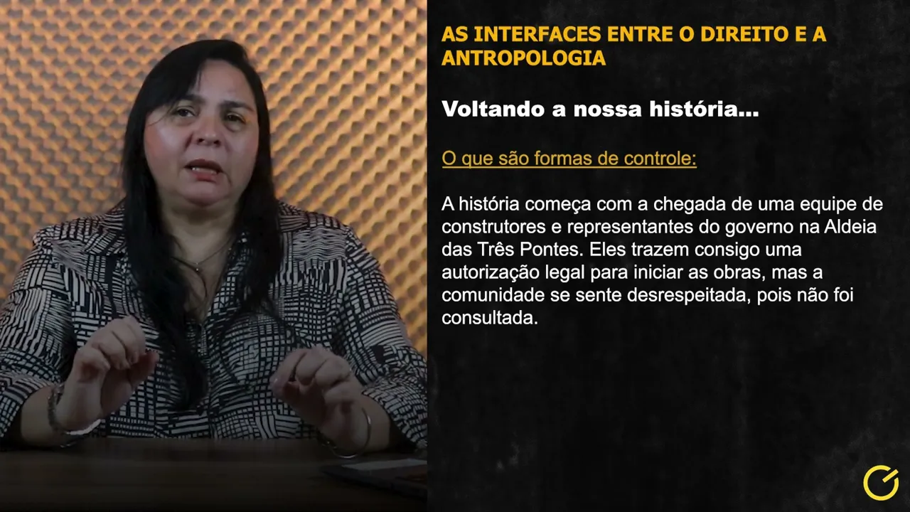 [Música] Olá, sejam bem-vindos e bem-vindas a mais um módulo da disciplina Estudos Socioantropológicos Aplicados ao Direito. Eu sou a professora Adriana de Avis e vamos tratar na aula de hoje sobre a unidade sens intitulada "As Interfaces entre o Direito e a Antropologia". Esta unidade está subdividida em cinco tópicos: são eles, primeiro, formas de controle; segundo, o sistema judiciário; terceiro, direitos sociais e as lutas sociais por direitos; quarto, direito das minorias; e quinto, diversidade cultural, família, juventude e violência.