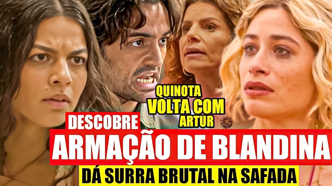mas a loira não tem essa intenção blandina se aproxima de quinota e diz eu não queria que tu soubesse desse jeito que nota mas verdade é que eu amo Artur ao ouvir isso Artur leva um susto e fala blandina o que você tá dizendo blandina se vira para Artur e diz eu não posso negar o que eu sinto Artur Essa é a verdade eu te amo Que nota fecha a cara e esbraveja Vocês dois se merecem desesperado Artur pega o braço de kinot e diz espere eu eu não sei o que tá acontecendo que nota