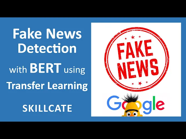 hello data scientist welcome to skill gate in this tutorial we shall build a powerful fake news detection model using the pre-trained bird with the help of transfer learning by the way this is part number three to our three-part transfer learning series where we have earlier discussed the intuition behind transfer learning and the refresher on what bert is and how it works so do refer to these earlier parts to reinforce your understanding i'll share the link to these videos in the description box below now let's get started on building a fake news detection model in this third tutorial for introductions we are skill kit and we are on a mission to bring you application based machine learning education we launch new machine learning projects every week so make sure to subscribe to our channel and hit that bell icon so you get notified of all our new ml projects well this is a snapshot of the data set we are using i have also provided a link to this in the description part of this video for your ready reference here we have these two csv files true dot csv and fake dot csv both of these files have the same exact data form we have the title of the news in this column one then the article text followed by the subject which is basically the category of the news article followed by the date on which this article was published for our use case we shall merge both of these files into a single large data set and add an additional column code label that will have true mention against all the observations from this true. csv and fake mention against all the observations from this fake. csv moving on this is our step-by-step plan on building this project first up we load our data set that is the true.