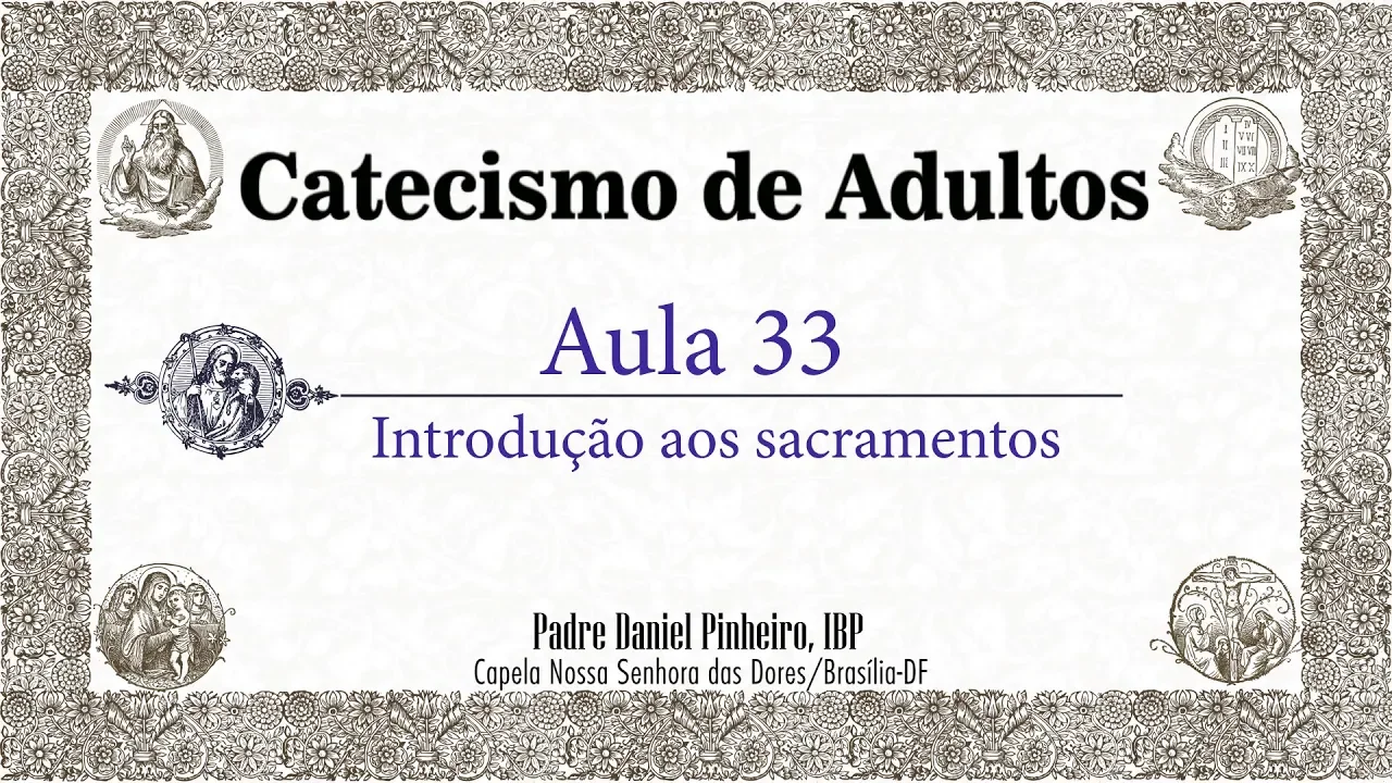 [Música] no pai do filho e do espírito santo amém ave maria cheia de graça o senhor é convosco condições voz entre as mulheres e bendito fruto do vosso ventre jesus em jesus de praga nossa senhora das dores sob a condição que o décimo do pai do filho e do espírito santo além de nós vamos então hoje começar nessa parte introdutória dos sacramentos tratar os sacramentos em geral para depois tratar de cada um deles ei particular alguma coisa que é importantíssima para a nossa vida espiritual são os principais canais da graça então não devemos levar bastante