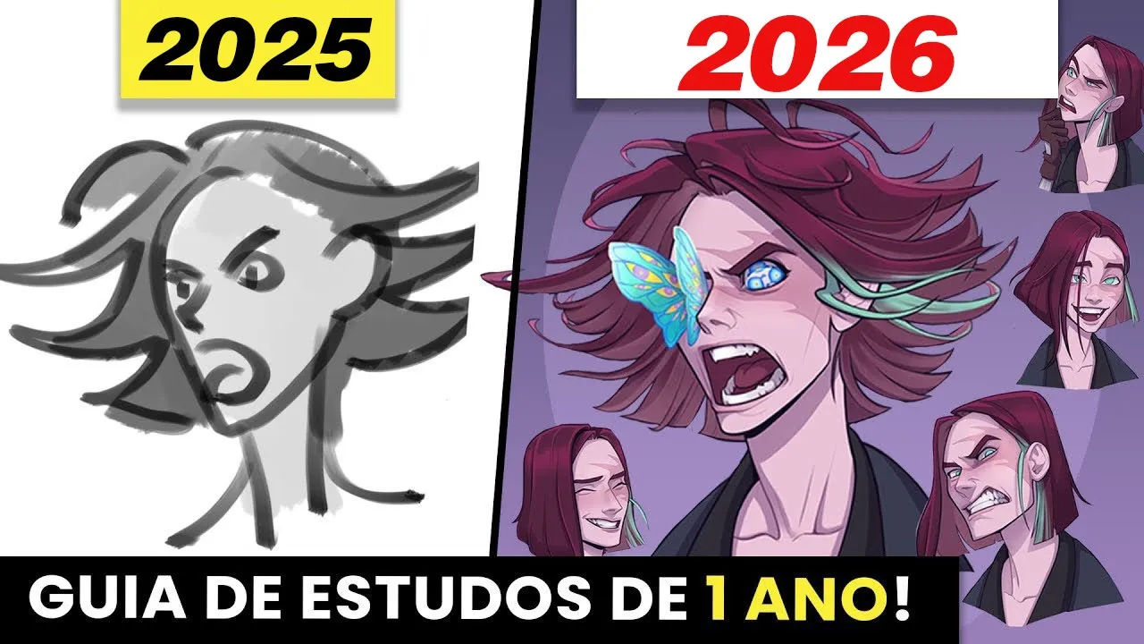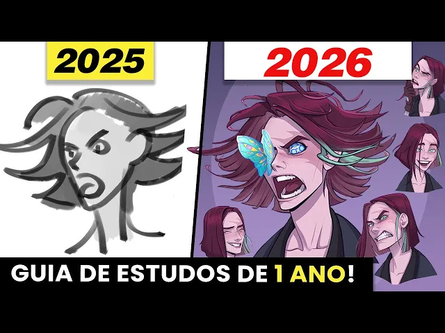 um ano é o tempo que o pessoal da fzd uma das maiores escolas de arte do mundo leva para sair disso para isso aqui [Música] as grandes questões são como fazer isso e é possível evoluir tanto o seu desenho estudando sozinho e de graça é claro que dá para fazer isso mas sem o direcionamento as coisas podem ficar um pouquinho difíceis então para facilitar sua vida nesse vídeo eu vou te dar um cronograma de desenho que é perfeito nesse cronograma tá a ordem certa de como você deve estudar desenho como praticar a estrutura e tridimensionalidade