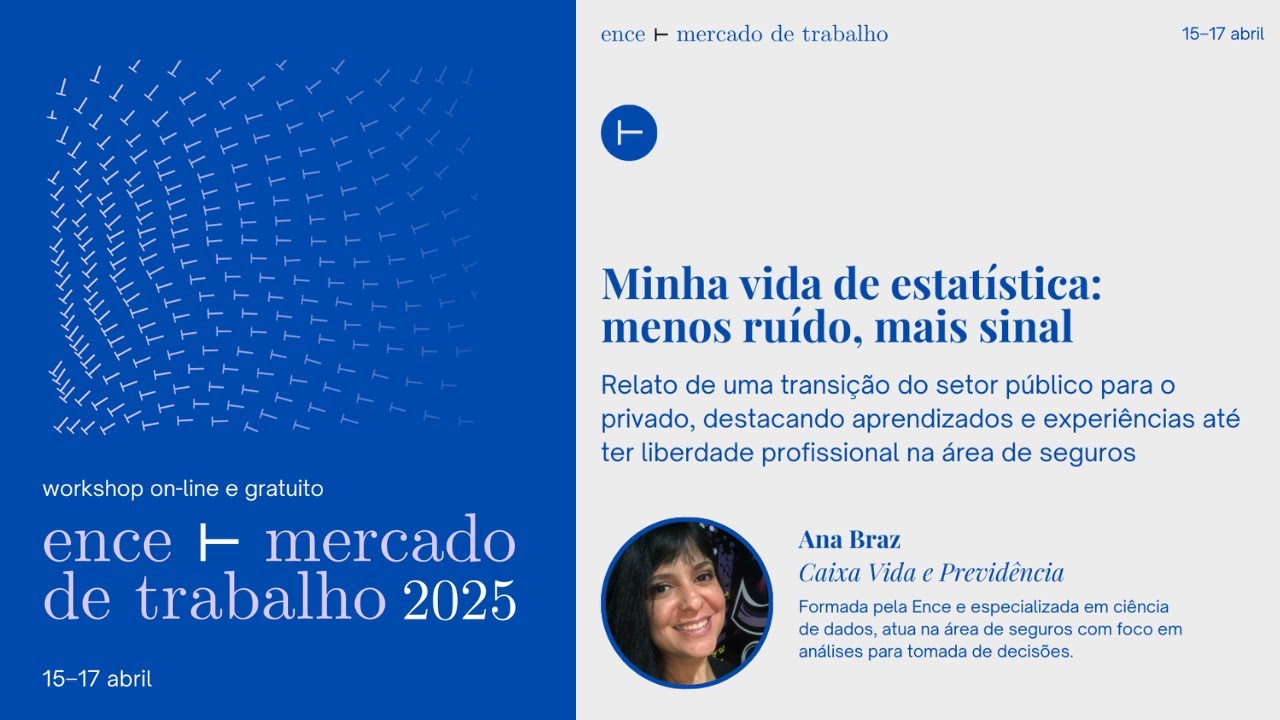 Então, lá em 2009 eu entrei paraa ENCE e eu cheguei sem saber muito o que que eu tava fazendo ali, o que que era um curso de estatística e fui aprendendo com tempo. Foi muito difícil no início, o meu ciclo básico foi bem complicado, reprovei algumas matérias, eh, foi eu realmente minha base também não era muito boa. E, enfim, eu acho que eu aprendi a estudar na ENCE, eu acho que eu não sabia o que era isso antes de viver a ENCE.