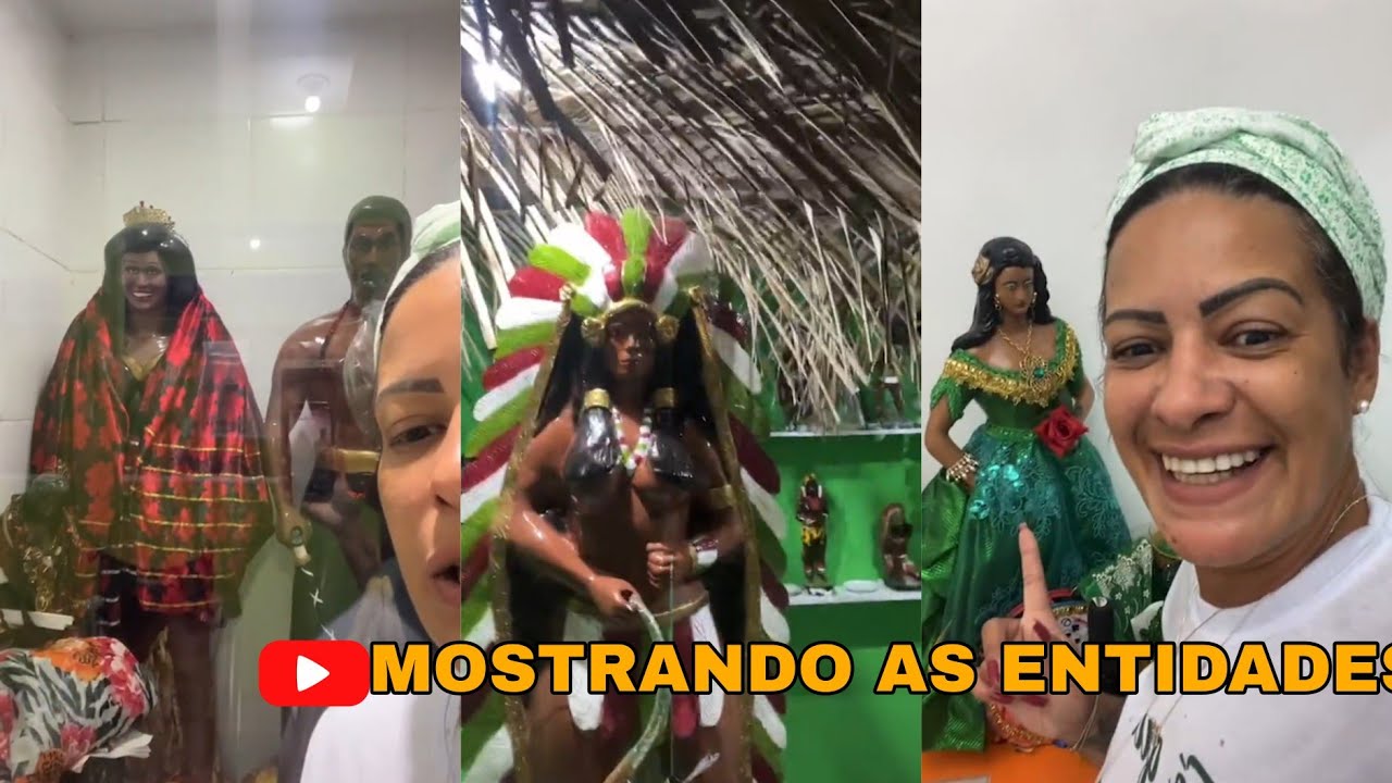 fica de alegria eu não estou dentro do santo Obrigada não não tô na época lá atrás mãe novinha mãe não queria a mãe não queria sair de responsabilidade mas depois que você é doutrinada é por isso que eu falo pra vocês o chamado aí vocês depois que vocês recebem o chamado vocês entendem tudo que tá acontecendo com vocês gente aí vamos lá aí a mãe tá lá aí as Pomba Gira vino os Exu tudo aí eles se incorporando aí botando eles lá para dentro para poder para poder né é trocando a roupa deles das Pomba