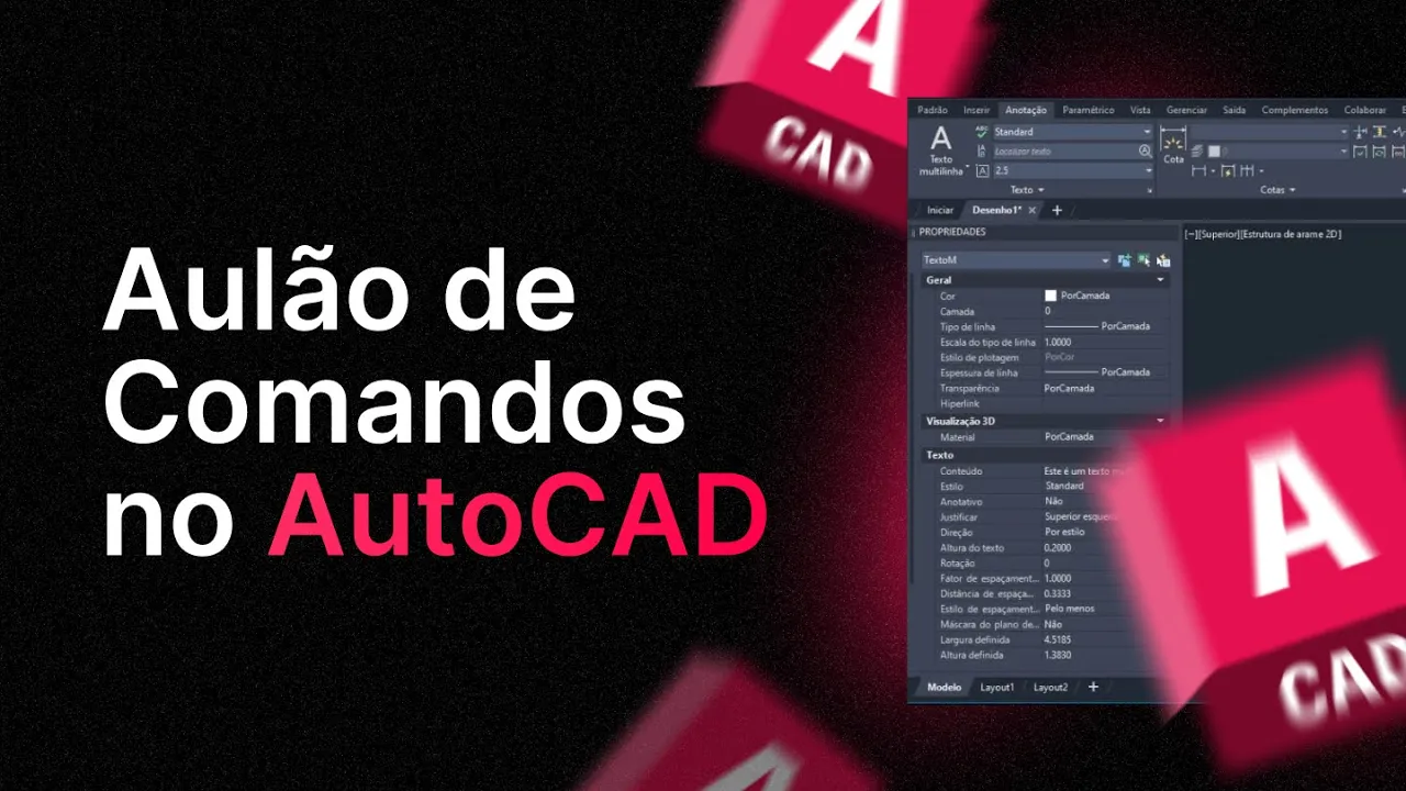 Então, passamos um pouquinho pelos comandos de desenho, vimos os comandos de modificações e fechamos vendo um pouquinho mais brevemente sobre os comandos de anotação. Eu quero, ó, que você interaja aqui com a gente, ó. Deixa nos comentários, comenta, por exemplo, comandos.
