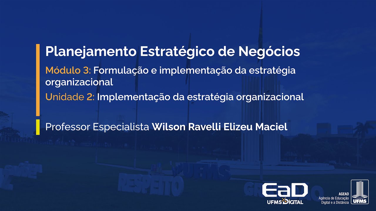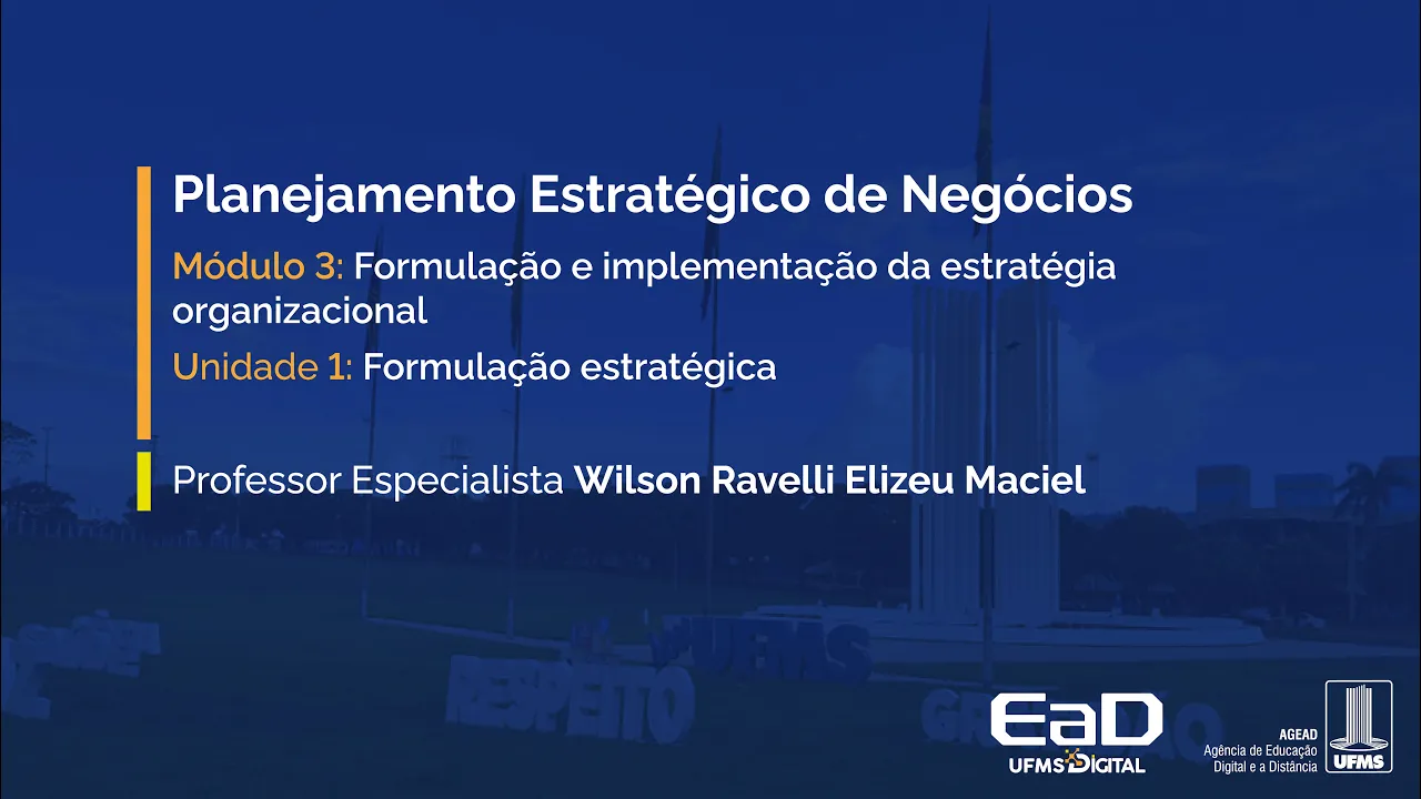 [Música] Olá alunos sejam muito bem vindos a nossa aula da disciplina de planejamento estratégico de negócios nessa aula trataremos os assuntos da unidade 1 denominada formulação estratégica dentro do módulo 3 que trata da formulação e implementação da Estratégia organizacional nessa aula então nós veremos um pouco sobre os fatores críticos de sucesso né da sua importância de saber determinar como empresa pode utilizá-los tem um ponto de partida para fazer a sua análise estratégica o que é mais importante para ela o que ela faz melhor é o que é mais crítico para ela dar mais atenção depois