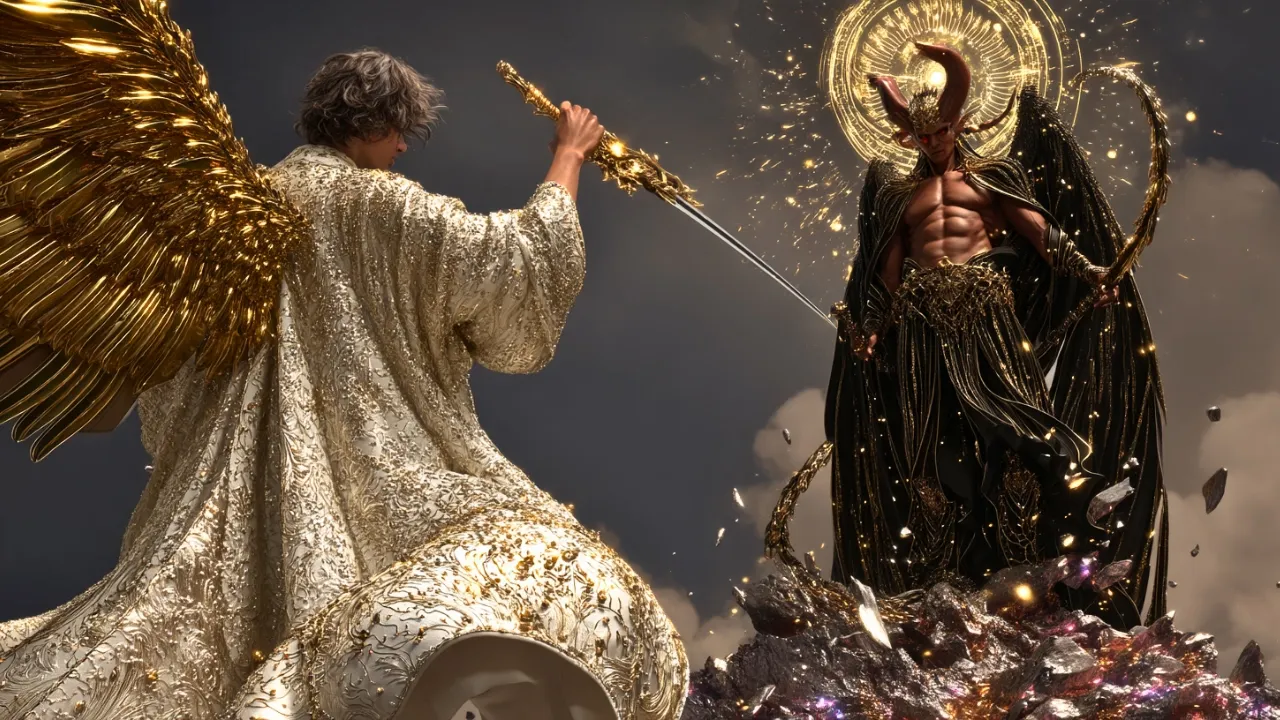 eram leais à sua ordem imutável, começaram a perceber a força Da convicção de Lúcifer. Eles começaram a questionar a visão de Metathron, a sentir o apelo da liberdade e a entender que talvez sua verdadeira missão fosse mais do que manter a ordem, talvez fosse desafiá-la. A batalha culminou em um momento de choque absoluto, quando Metathron, com um golpe devastador, tentou destruir a essência de Lucifer. Mas Lúcifer, com sua compreensão profunda da criação, se ergueu, não com força bruta, mas com a Força da verdade, que agora fluía através de todo o cosmos. Ele usou essa verdade
