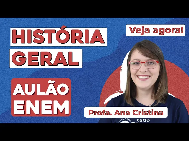 [Música] [Aplausos] Olá aluno do curso Enem gratuito seja bem-vindo a mais um aulão dessa vez de história geral eu sou a professora Ana Cristina e juntos nós vamos ver os cinco assuntos de história geral que mais cai no ENEM vai ser um resumão mas a gente vai te apontar os caminhos objetivos do que você precisa Lembrar para conseguir arrasar na prova e não esquece que a gente também tem um e-book que você pode baixar clicando aqui no link na descrição e se você quiser se aprofundar sobre algum desses temas a gente tem vídeo no YouTube