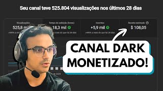 Porque é o número de vídeos que eu tenho postado agora nesse canal que eu tô te mostrando aqui na tela agora, nessa tela aqui que eu tô apontando. E esse é um canal Dark que eu tô crescendo aqui no YouTube e que para quem já acompanha sabe, para quem já acompanha conhece, já viu o progresso. Eu tenho vídeos mostrando eu trabalhando nesse canal desde que ele tinha, sei lá, 30 inscritos e uma média de 100 visualizações por vídeo.