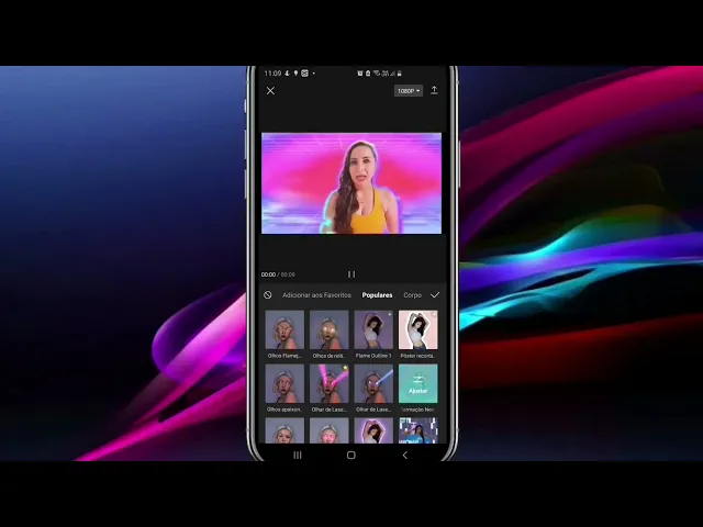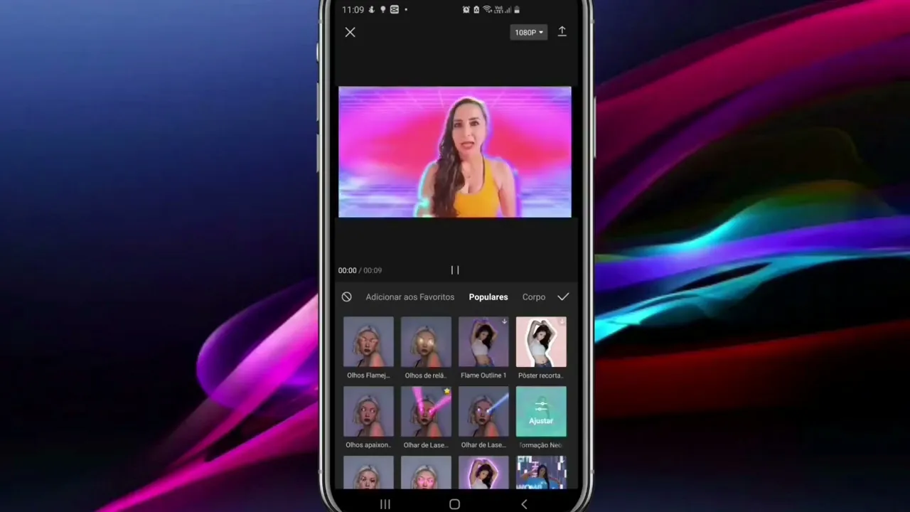 efeito já está pronto basta a gente selecionar clicar que o aplicativo já faz aí a aplicação desse efeito ele temos populares temos corpo temos chapéu Olha isso que legal temos óculos então a minha sugestão é que você vá brincando aí com esses recursos para você conhecer tem muita coisa bacana Olha esses efeitos que legal isso é legal porque enriquece o seu vídeo deixa ele mais atrativo mais criativo e caso você queira colocar algum desse efeito aqui na parte de favoritos é só você segurar clicar e segurar E aí o adicionar aos Favoritos vai mexer igual