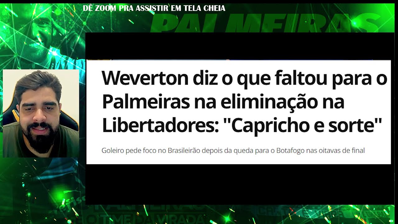 então quer dizer eh você junta tudo e aí você pega times com a potência que tem eh jogadores mais Eh mais experientes mais rodados com mais talento do que o Palmeiras a gente sabe disso a gente viu o Botafogo hoje você vai assim ó o Botafogo entrou eh pressionou no começo do jogo lá lá também perdeu o Luiz Henrique Aí entrou o garoto que também ajudou ajudou no primeiro gol depois entrou o Tiquinho Soares que ajudou no segundo gol e aí o Palmeiras chi naquela coisa do Ah vamos vamos com a raça com o coração