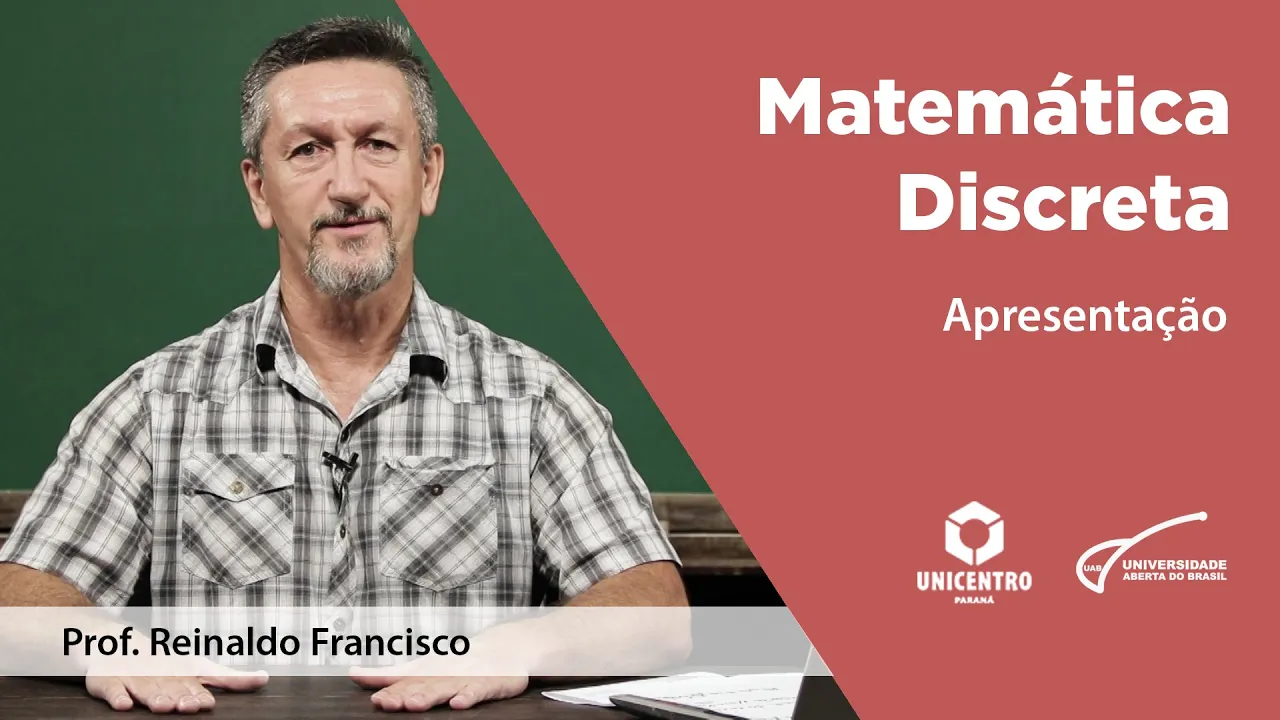 [Música] olá eu sou professor reinaldo francisco do departamento de matemática da unicentro e estamos aqui dando início a uma nova disciplina no nosso curso de especialização em ensino de matemática para o ensino médio essa disciplina é a matemática discreta é a matemática discreta na verdade ela trata de estruturas que são finitas ou a gente pode dizer que essas estruturas são inumeráveis inumeráveis com o conjunto os naturais e ela apresenta método de solução de problemas bastante diversificados e ea matemática discreta também não se presta muito bem é ao treino do raciocínio é matemático é a gente