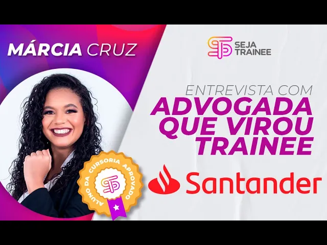 e chegou o nosso momento tão especial da nossa Live de poder conversar entrevistar um pouco mais da Márcia gente a Márcia se formou em Direito como eu falei para vocês aprovou no treino do Santander tá ela aqui toda poderosa aqui nas fotos e falando assim eu participei desse processo seletivo por três vezes parece muito mas gosto da frase que diz se todo passarinho desistisse após a primeira queda o céu seria vazio super inspirador já ela nem chegou já trazendo inspiração pra gente tá Então olha só que legal eu quero convidar agora para participar com a