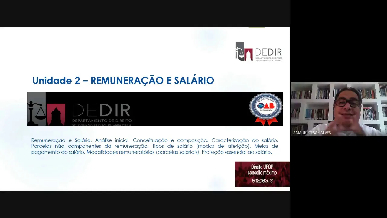 Direito do Trabalho Conjunto com vocês veem aí que a ementa da unidade trás remuneração e salário análise Inicial conceituação e composição caracterização o salário parcelas não componentes da remuneração tipos de salário meios de pagamento do salário modalidades remuneratórias e é essencial salário nós vamos iniciar por um tema complexo e que merece muita atenção de vocês porque nós não temos na doutrina nem na jurisprudência até mesmo a legislação é um conceito suficiente no que seja remuneração salário a sentir de nossas 43 reformado em 2017 ela não é tem nos conceitos seu ponto de destaque né mas