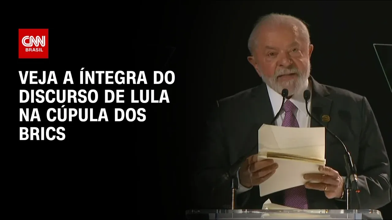 para avançarmos tema de interesse já contamos com a participação da África do Sul mas a respeito da atividade do grupo será ampliada com o ingresso da União Africana e de outros países do continente então a fala do presidente Luiz Inácio Lula da Silva na cúpula dos brics é o presidente que falou logo após o Presidente da África do Sul Cirilo ramafózza tá a gente está acompanhando aí o presidente como uma dificuldade até de fala tá de vez em quando o presidente Lula tá tendo problemas aí de fala na garganta em alguns discursos mas bebeu uma