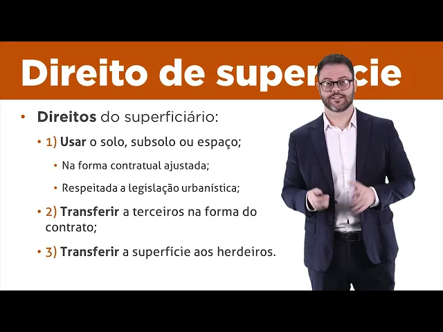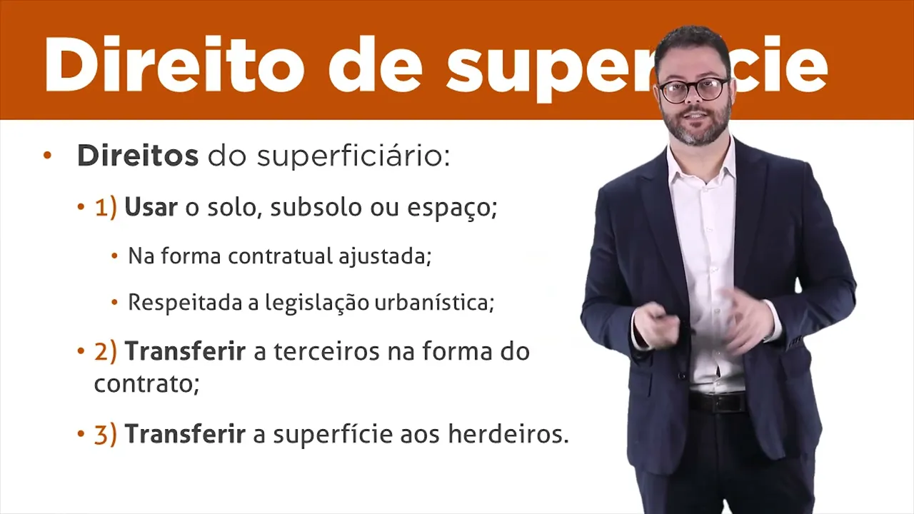 que o o superficiário faleça e os seus herdeiros recebam direito real de superfície Tá certo e pode ser também que o superficiário deseje alienar aquele direito de superfície a um terceiro então é possível alienar o direito de superfície é possível deixar o direito superfície para o sucessor ah na herança e assim por diante Tá certo tudo isso porém Depende do que está pactuado no contrato que institui esse direito real bom vamos olhar agora quais são os direitos do superficiário ou seja daquele sujeito que obtém o direito de superfície esse sujeito lembrando pode ser uma pessoa