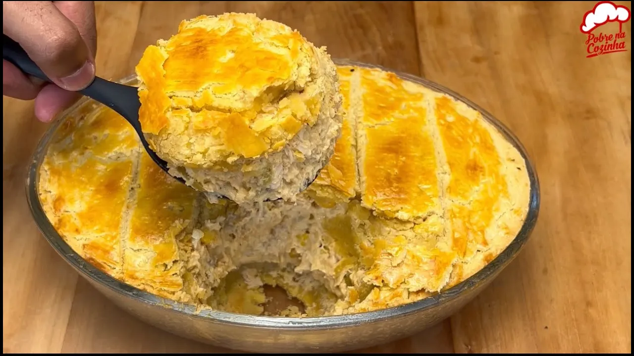 o restante da massa [Música] tudo pronto aqui no meio da massa vou fazer um X você pode fazer o desenho que você quiser na sua massa apenas para não deixar ela ficar estufada [Música] e por cima pessoal vamos pincelar uma Gema feito isso agora vamos levar ao forno acima de 30 graus deixa por 30 minutos ou até dourar e Olha só pessoal como esse empadão fique incrível passa na casa de vocês que eu tenho certeza que todos vão amar uma receitinha super rápida fácil que fica deliciosa eu espero que vocês tenham gostado essa foi mais
