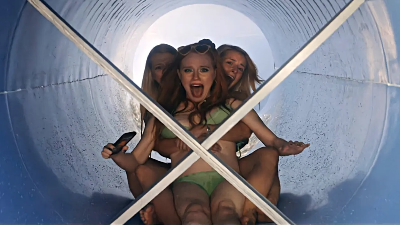 At this point no one is aware of the metal blades inside one of the slides, meanwhile Priscilla who also works there opts to spend her time hooking up with Slim instead of doing her job. In the afternoon, all the seniors are excited to participate in a fun competition with a $500 prize. They would be split into teams and will compete for the fastest to slide down the waterslides.