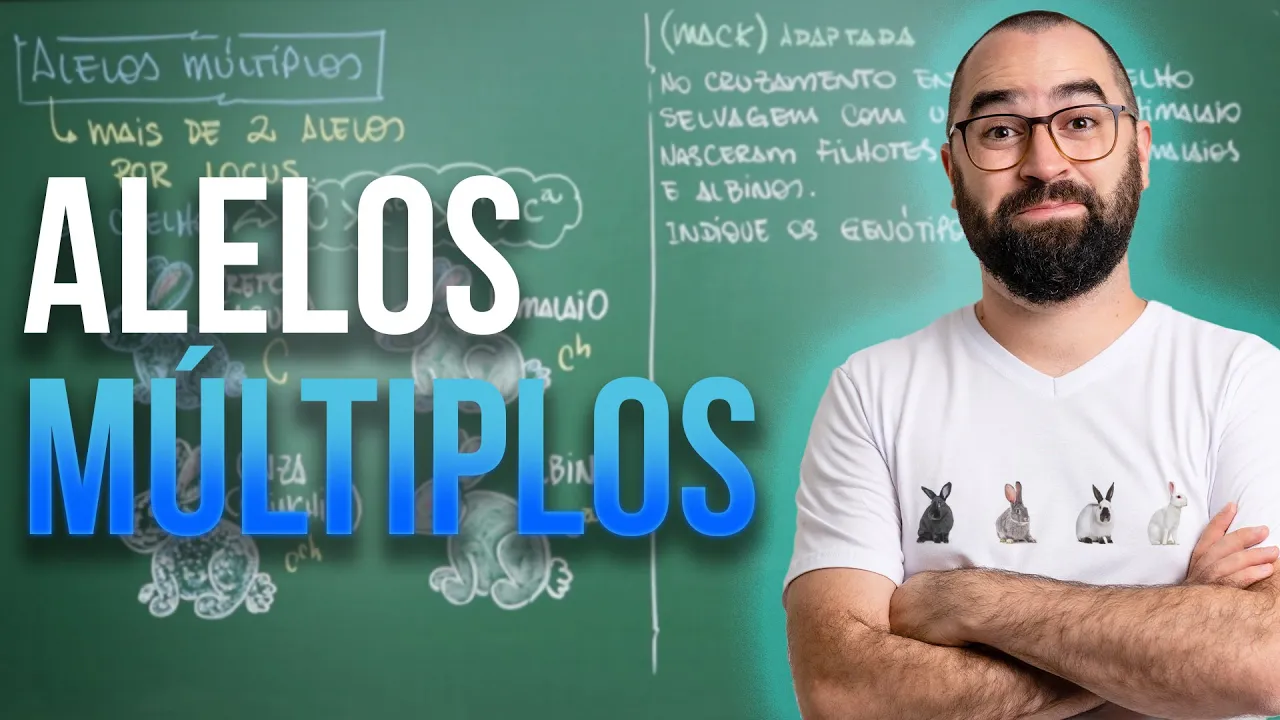 esse vídeo não esquece eu preciso muito da sua colaboração nesse sentido comenta lá naquele vídeo se você acha legal esse tipo de exercício se você achar massa que a gente tenha outras formas de vídeos aqui no canal Como aquela que vai ser apresentada para você na sequência o link está aqui embaixo e bora para a aula [Música] gente vamos falar então de alelos múltiplos tá antes da gente começar com a parte de exercícios sabe entender esse negócio do ponto de vista do exemplo eu quero que você saiba o conceito de alelos múltiplos cada vez mais