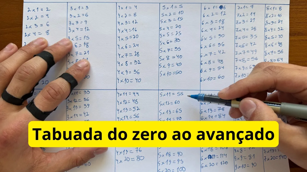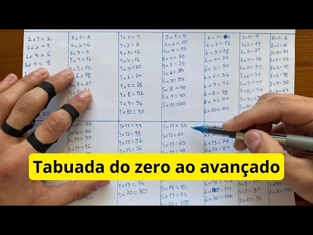 estar muito prejudicado porque você não tem um domínio sólido de tabuada, porque esse domínio sólido de tabuada, ele permite que você tenha um domínio mental de porcentagem, um domínio mental de todas as matérias. Você passa a fazer todas as contas de cabeça mais rápido quando você domina a tabuada. Então, nesse vídeo aqui, esse não é um vídeo que eu tô fazendo com pressa. Esse é um vídeo que ele eu tô fazendo para resolver uma deficiência educacional, intelectual, cognitiva de quem tá assistindo, tá? Então eu não vou fazer aqui os métodos tradicionais, que é só escrever