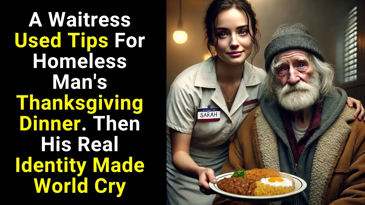 Sarah worked double shifts at a small Diner barely making enough to cover her rent and basic needs every day she watched an elderly homeless man sit outside in the cold his weathered face showing years of hardship despite having only $80 in tips saved for her own Thanksgiving dinner Sarah decided to use that money to buy him a warm holiday meal she knew this meant having nothing left for herself but seeing his hunger pained her more than her own empty stomach 3 days later as Sarah served her regular customers A well-dressed man walked in with a