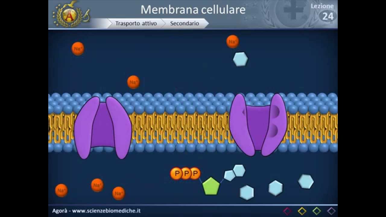 anche molto polarizzate come ad esempio gli ioni cosa sono gli ioni sono delle molecole con carica elettrica anche l'osmosi e cioè la diffusione dell'acqua come abbiamo detto attraverso la membrana viene facilitata grazie a questi canali proteici che nel caso dell'acqua sono molto famosi vengono chiamati appunto acquaporine e cioè delle proteine che vanno a formare dei veri propri pori che fanno passare l'acqua da dentro a fuori e invece come funziona il trasporto attivo abbiamo detto che il trasporto attivo avviene attraverso il consumo di energia ricordiamoci che l'energia dentro il nostro corpo e quindi anche dentro le
