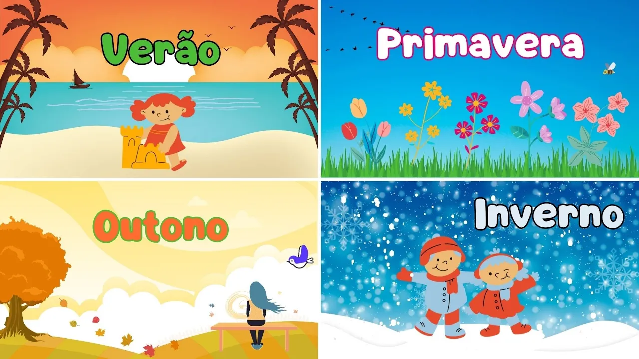 as estações do ano Olá amiguinhos vocês sabiam que durante o ano nós temos quatro estações diferentes ou seja existem quatro períodos com características climáticas bem definidas E isso acontece porque a posição da Terra em relação ao sol vai se modificando ao longo do ano então a quantidade de luz solar chega de forma diferente em cada parte do planeta afetando o clima de cada região por isso temos quatro estações que vão se alternando durante o ano essas Estações São primavera verão outono e inverno vamos saber um pouquinho mais sobre as estações do ano a primavera A