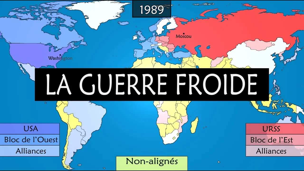 During the second half of 20th century, the two greatest global powers faced each other, a confrontation without direct clash which had been keeping the world in suspense for almost 45 years. Let's see on maps, the evolution and the Cold War's issues. At the end of the World War Two, After 6 years of fighting a more than 60,000,000 dead, the pre-war great European powers are weakened, there are only two superpowers left in the world, the USA and the URSS who had allied each other to defeat the Nazi Germany and the Japan's Empire.