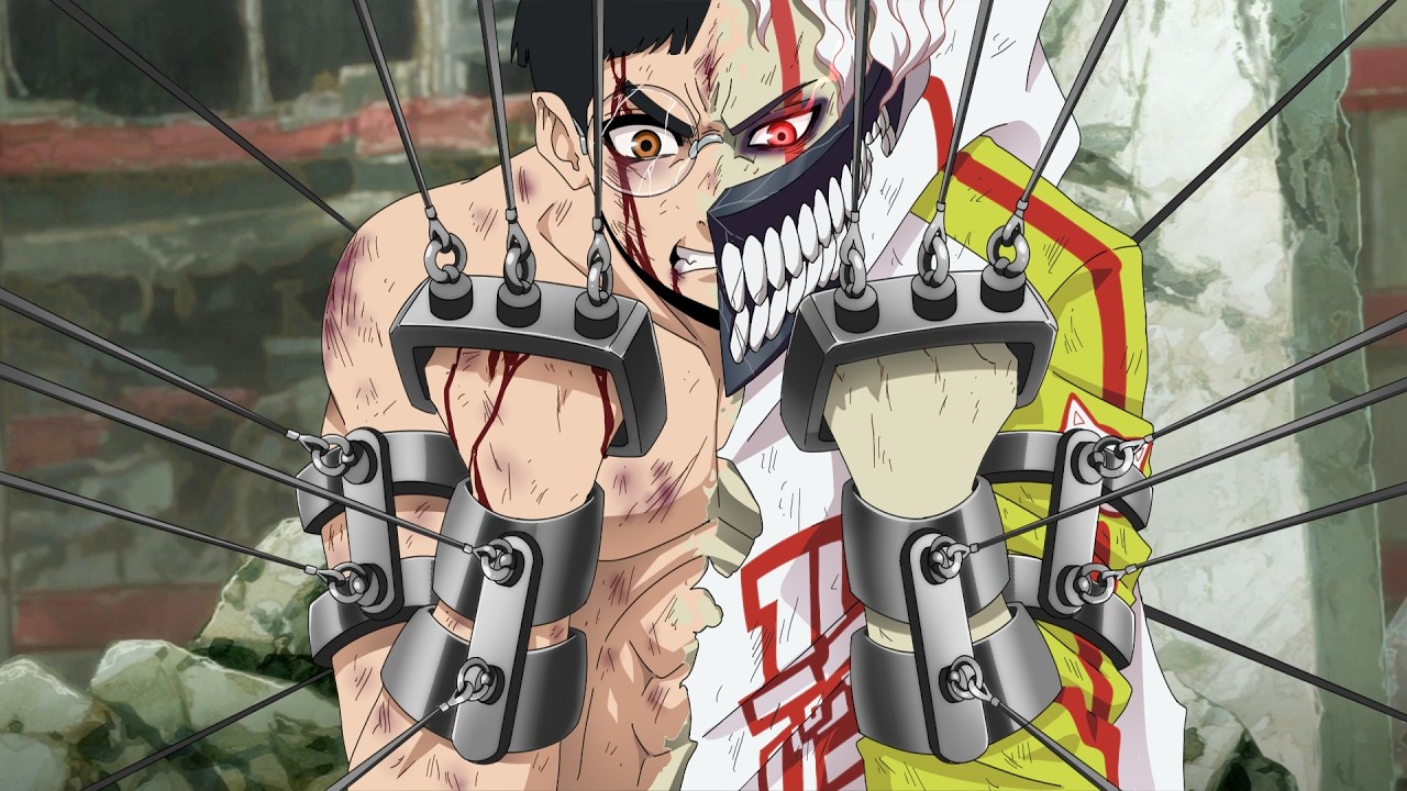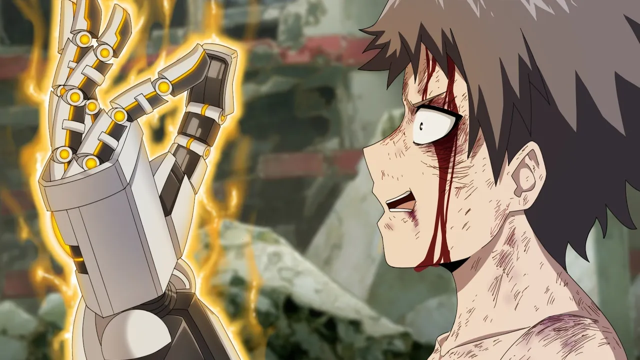 and he has no idea what the murder drone would be targeting him instead of the arm but the arm tells him that they don't have any time to relax because even more drones are on their way and the only way he is going to make it out of here alive is if they work together meanwhile at the kagami headquarters the president has just been informed that the drones have located the missing trigger arm but it seems to be in the possession of a random kid one of the higher-ups asks if the boy is affiliated with