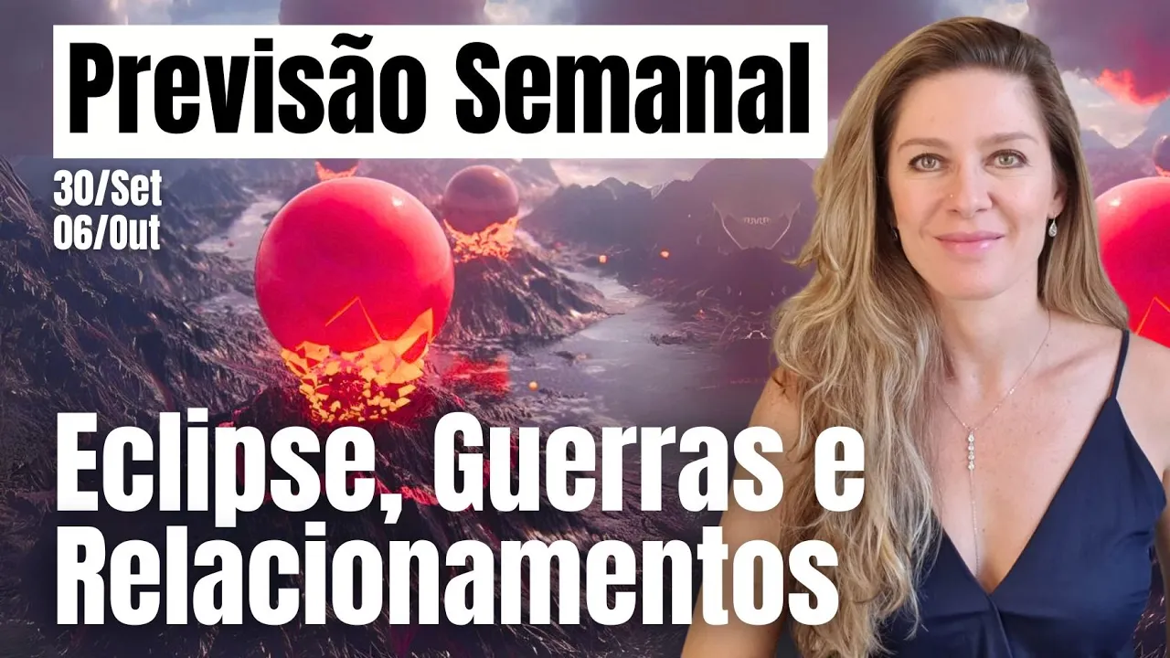 o último eclipse do ano é com isso que a gente vai se deparar pelos próximos dias no vídeo de hoje eu falo sobre a previsão semanal de 30 de setembro a 6 de outubro imaginando que a gente tem um monte de aspectos planetários importantes mas nada tão grandão quanto esse Eclipse pois tem aí consigo Lápis e Papel na mão para você anotar os posicionamentos planetários mais importantes e vamos começar [Música] bom pessoal sejam todos bem-vindos para quem caiu de paraquedas neste canal Eu me chamo Aline macari eu sou jornalista astróloga e analista junguiana curta esse