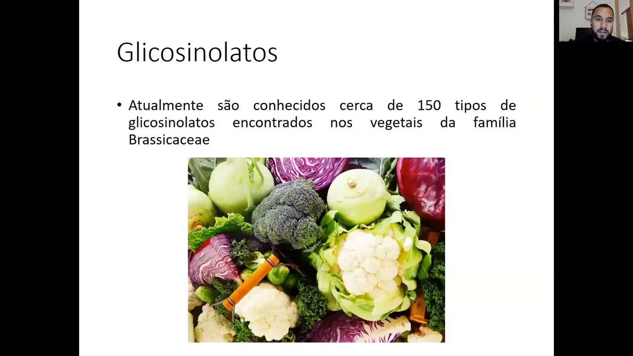 Olá pessoal tudo bem Estamos aqui em mais uma aula agora vamos falar um pouco sobre os compostos bioativos né denominados de glicosinolatos né os glicosinolatos eh são são grupos específicos né de compostos que não são classificados como os polifenois já que a gente viu que a maior parte dos compostos bioativos que nós discutimos né n em relação à aos benefícios à saúde são fazem parte dos grupos dos são considerados na verdade eh compostos fenólicos são polifenois os glicosinolatos não são classificados como eh como polifenois né os glicosinolatos fazem parte de um grupo né de compostos