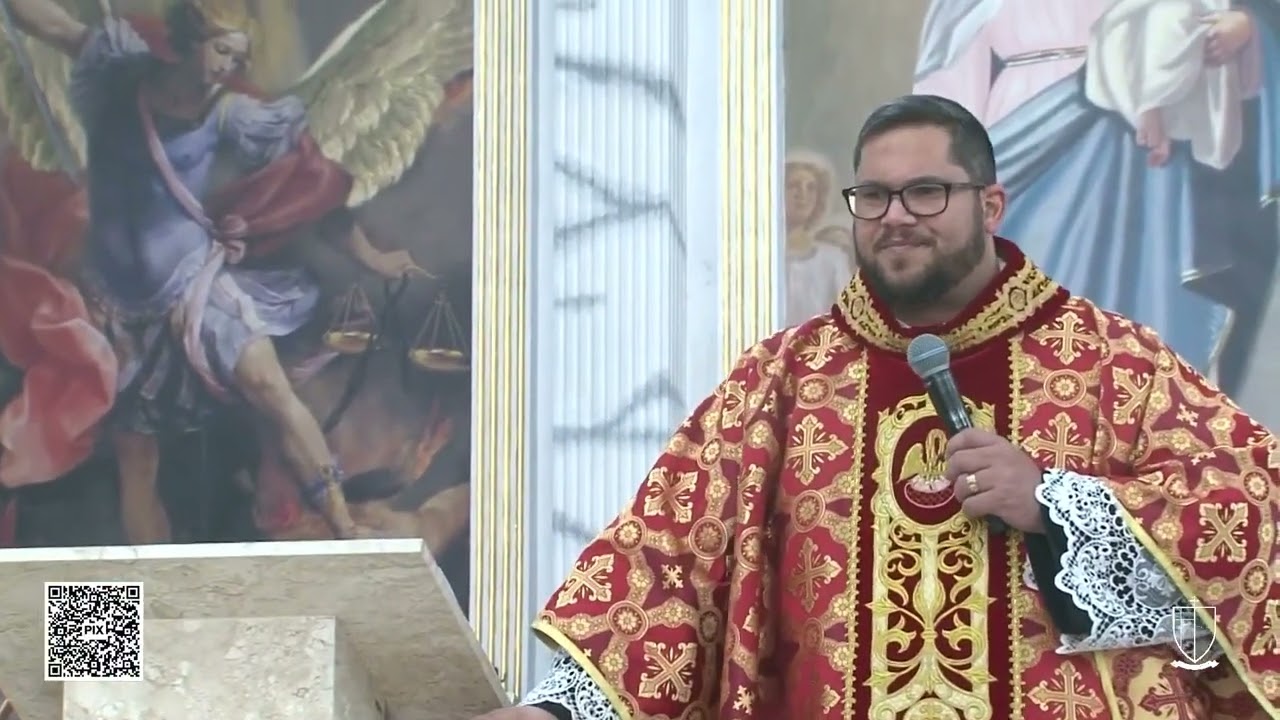 sume eterno sacerdote como é que ele fez o sacrifício ele mesmo se ofertou assim ele se deu ele se fez vítima ele morreu Por Amor a Nós como é que o padre é Sacerdote Diferente de vocês Eu ofereço o único e eterno sacrifício se renova ao corpo de Cristo no Altar o mesmo sacrifício de Cristo só que para esse sacrifício eu recebo o sacrifício da vida de cada um de vocês porque você também é Sacerdote Quem é pai e mãe aqui levante a mão você é Sacerdote dentro da tua casa porque você tem os teus