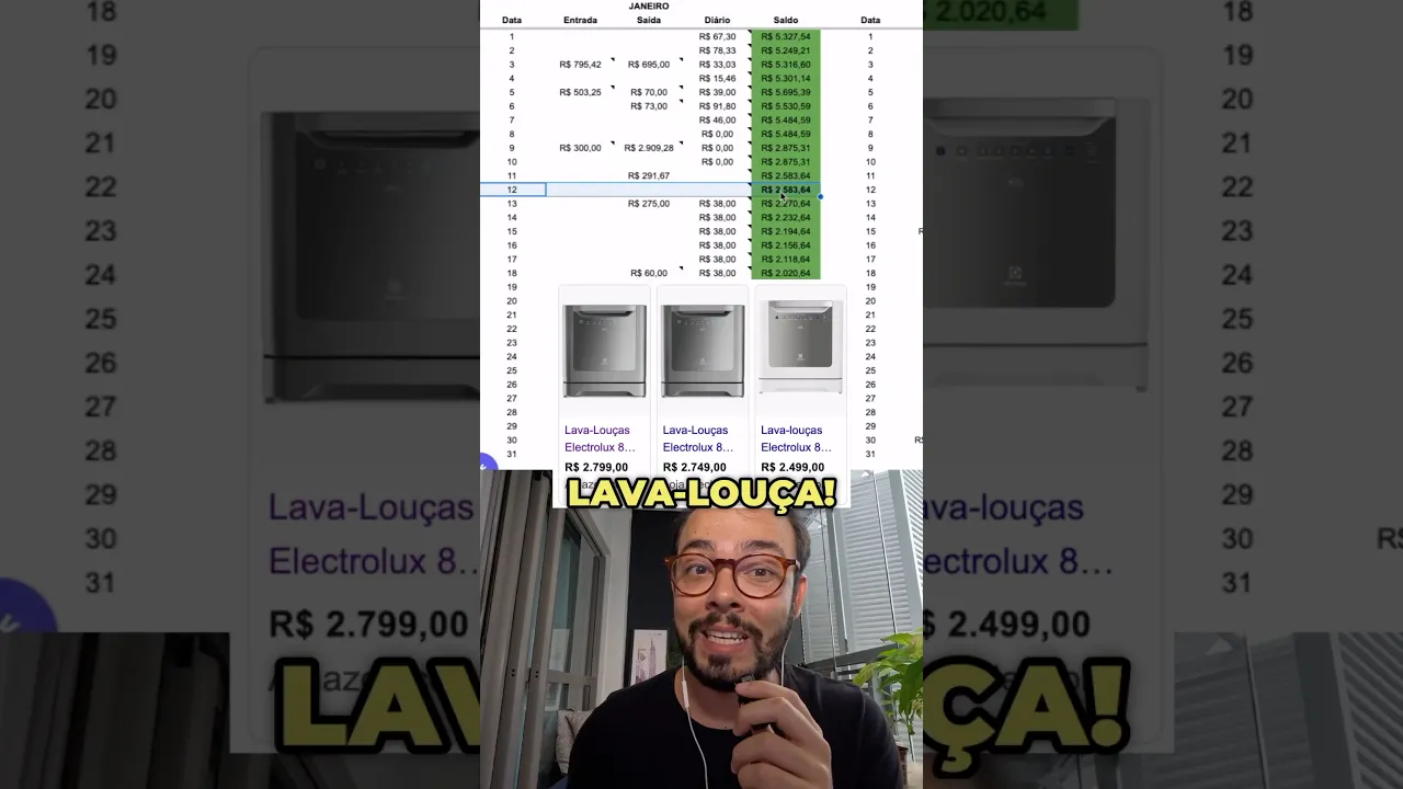 Qual é a compra que essa pessoa quer fazer um lava louça isso salva casamentoo essa pessoa tem em conta R 2.583 64 se essa pessoa fizer qualquer compra hoje até o dia que ela vai receber salário que é o dia 30 vai ter problemas financeiros Como assim Breno se no dia 12 só paga uma parcela de qualquer coisa por exemplo de R 300 Olha só fica mais negativo ainda no fim de Janeiro não pode comprar um laval louça Breno mas quando que pode comprar vamos ver no fluxo fevereiro também não pode Março também não a
