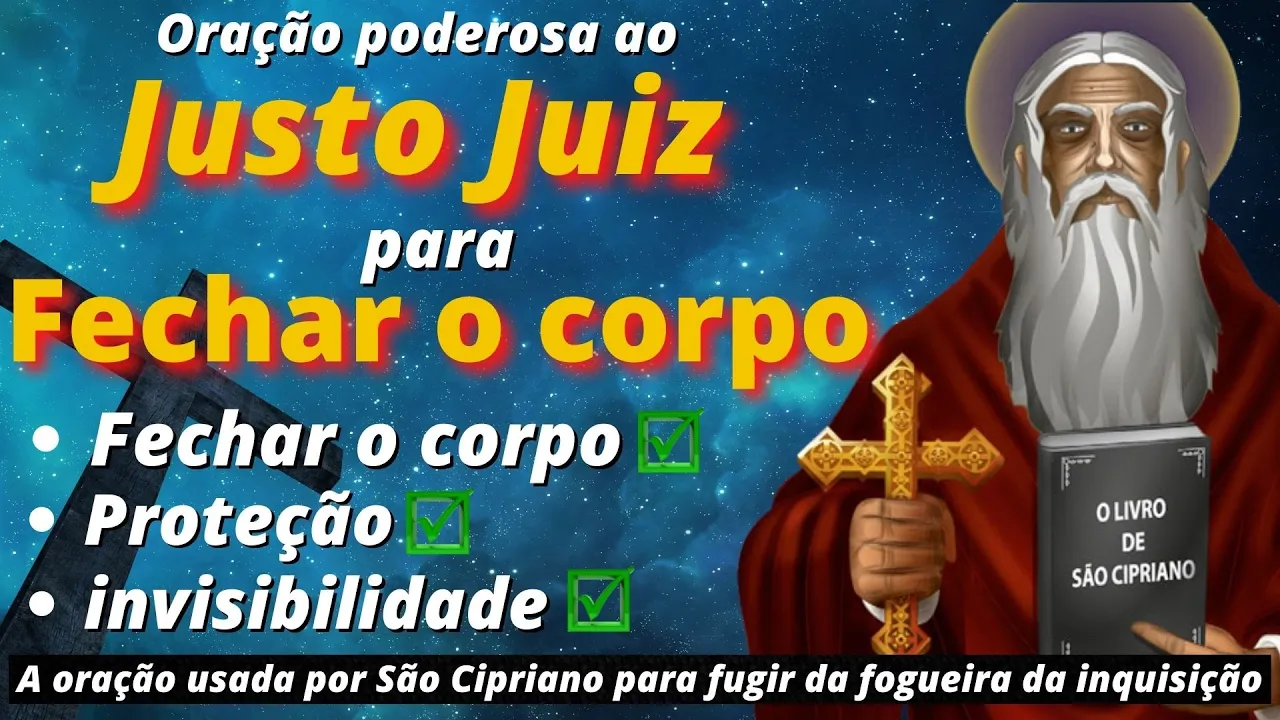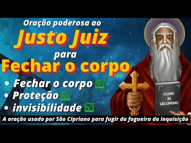 fé cristã por isso no início antes de começar a sua obra na fé cristã foi muito perseguido e usava esta oração para se proteger o segundo próprio Cipriano diz esta oração é muito eficaz para fechar o corpo de qualquer mal para se proteger e se esconder com virtude de invisibilidade para o corpo o livramento é certo para todos que a levarem consigo bom então para dar certo como sempre eu peço que você faça todos os dias tenha muita fé e seja Grato Ao justo Juiz pode ser praticada em qualquer dia hora e local quantas vezes