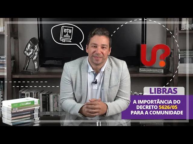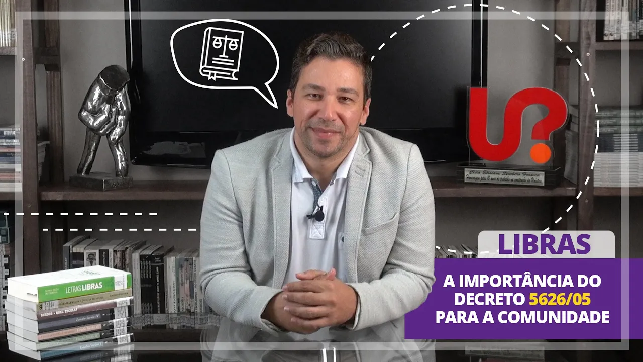 o olá tudo bem eu sou o professor wilton dourado coordenador do curso de libras da unix e hoje vou conversar com vocês sobre o importante decreto 5 6 26 1 e o decreto nº 56 26 22 dezembro 2005 foi publicado para regulamentar as duas leis publicadas anteriormente à lei nº 10436/2002 e um artigo 18 da lei nº 10.098 de 2.000 a lei 10436/2002 é a lei que reconheceu a libras como língua no brasil pois antes a língua de sinais não era considerada uma língua aqui em nosso país e sim tipo de linguagem que se utilizava