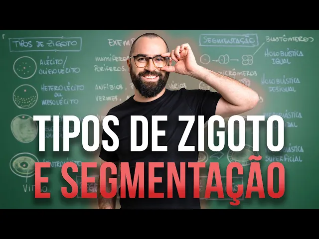 [Música] bora então conversar a respeito dos tipos de zigoto e os padrões de segmentação que a gente tem em cada um desses tipos de zigoto presta atenção porque se é um assunto que a galera acha super cascudo cheio de nomes cheio de especificações cheio de exemplos e se você não entender a lógica que existe por trás dessa organização desse padrão de classificação você não entende nada e você vai se confundir na hora de uma prova eu quero que você entenda não quero que você decore e eu acho que você vai conseguir fazer isso A partir