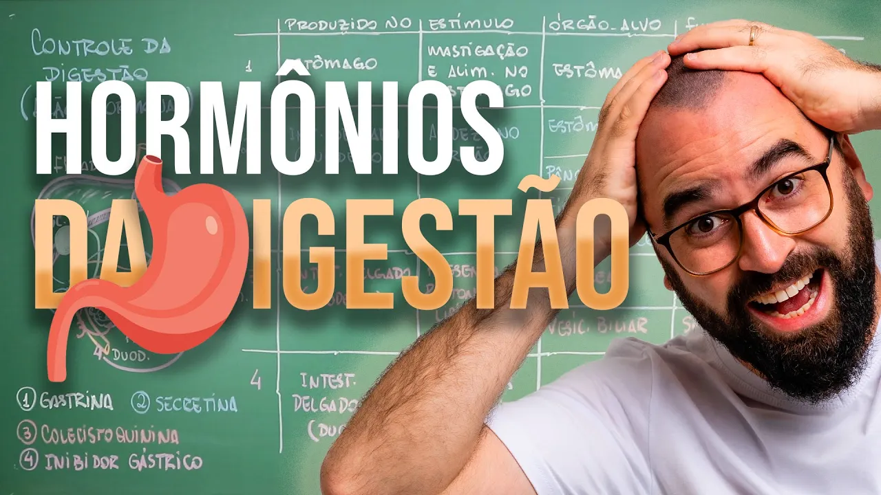 um maior desconforto Eu me chamo Guilherme eu sou professor de biologia e te convido vem comigo [Música] galerinha vou dizer um negócio para vocês quase 100% dos Estudantes quando se deparam com uma questão de vestibular que envolve essa temática aqui ficam perdidos se confundem normalmente erram a questão e eu tô aqui para desmistificar esse assunto eu não quero que ele pareça para vocês uma decoreba de nomes a gente vai entender a lógica que existe por trás de toda ação hormonal dentro do seu trato digestório Só que tem um detalhe para você compreender isso aqui você