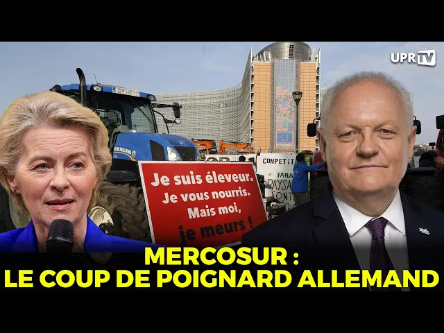 derlen a donc signé un accord pour forcer la main de la France un accord qui va favoriser l'industrie allemande et qui va torpiller l'agriculture française et l'économie française c'est vraiment faire coup double ça prouve au passage que le couple franco-allemand évidemment n'existe pas ça fait 17 ans que je l'explique d'ailleurs il y a de moins en moins de gens qui parlent du couple franco-allemand parce que depuis 17 ans j'explique que c'est un bobard qui a été lancé en France il n'y a qu'en France qu'on parlait du couple franco-allemand les allemand s'en foutent complètement eux c'est