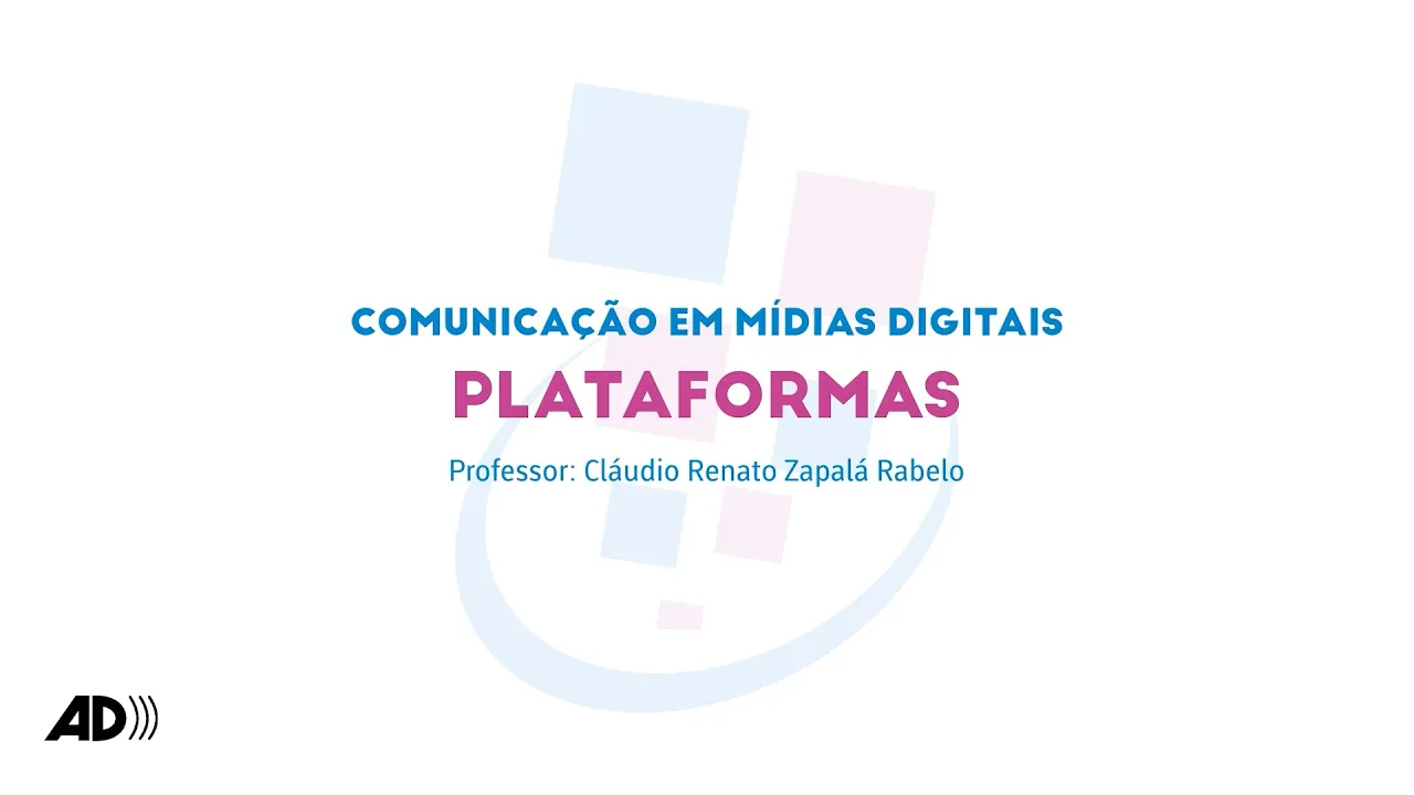 notas áudio descritivas introdutórias do vídeo Mox comunicação e mídias digitais plataformas a vinheta de abertura é composta por uma animação nas cores azul e rosas sobre fundo branco de uma forma circular e Radiante sai um conjunto de pequenos quadrados abaixo em letras maiúsculas moqueca plataforma digital de cursos de extensão da UFES o Professor Cláudio Renato usa a palavra Rabelo é um homem branco tem os cabelos curtos e grisalhos olhos claros usa camisa social na cor azul marinho relógio no pulso esquerdo e Aliança dourada no dedo anelar ele está diante de uma escrivaninha branca com uma