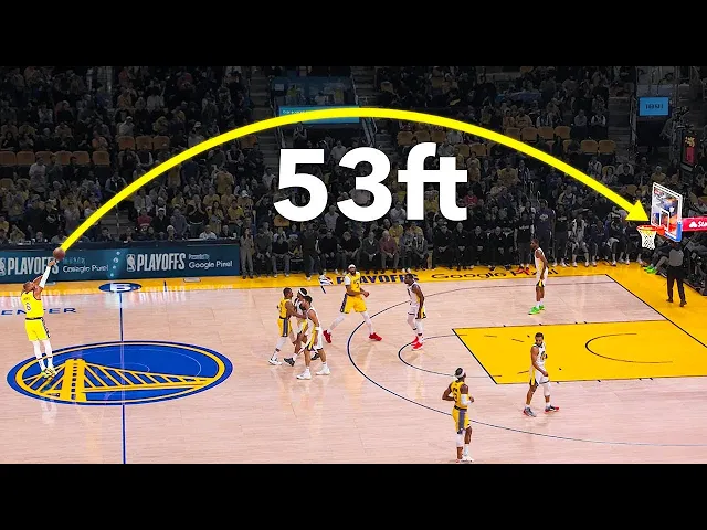 from a record-breaking shot to a halfcourt buzzer beater these are longdistance shots from level one to level 100 and for level one LeBron silences both the arena and his critics the lead is three love LeBron and got it baks it in wow I told you Kevin you got to C that man n LeBron's out here painting the Mona Lisa and everyone else is just using coloring books but Paul George also has a flare for the dramatic at level five the mark loose ball get another possession he threw up I can't believe it went in Paul