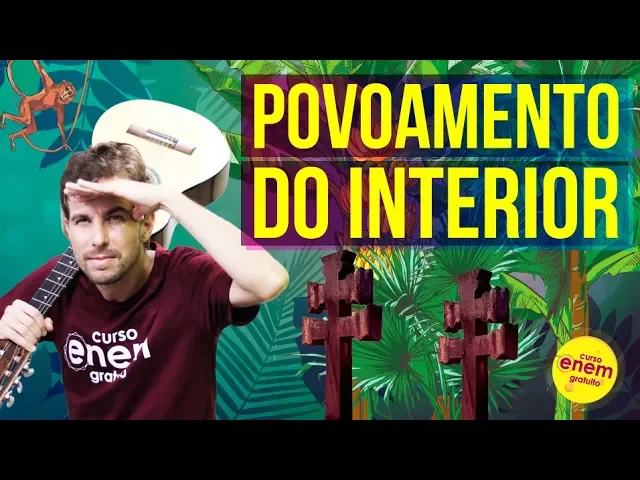 o Olá eu sou Felipe professor do curso Enem gratuito ao de hoje é sobre o povoamento do interior no contexto do Brasil colônia [Música] de povoamento do interior a gente fala o que todas atividades que provocaram um deslocamento do povoamento do território do litoral para o interior principalmente a partir da segunda metade do século 17 e depois também mais precisamente no século depois nós temos a uma atividade mais importantes entre elas as bandeiras as entradas Monções missões jesuíticas a pecuária EA extração das drogas do sertão entre o plantamos de bandeiras é importante lembrar que as