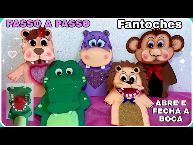 (Passo a passo) FANTOCHES DE ANIMAIS EM EVA. Abre e fecha a boca.